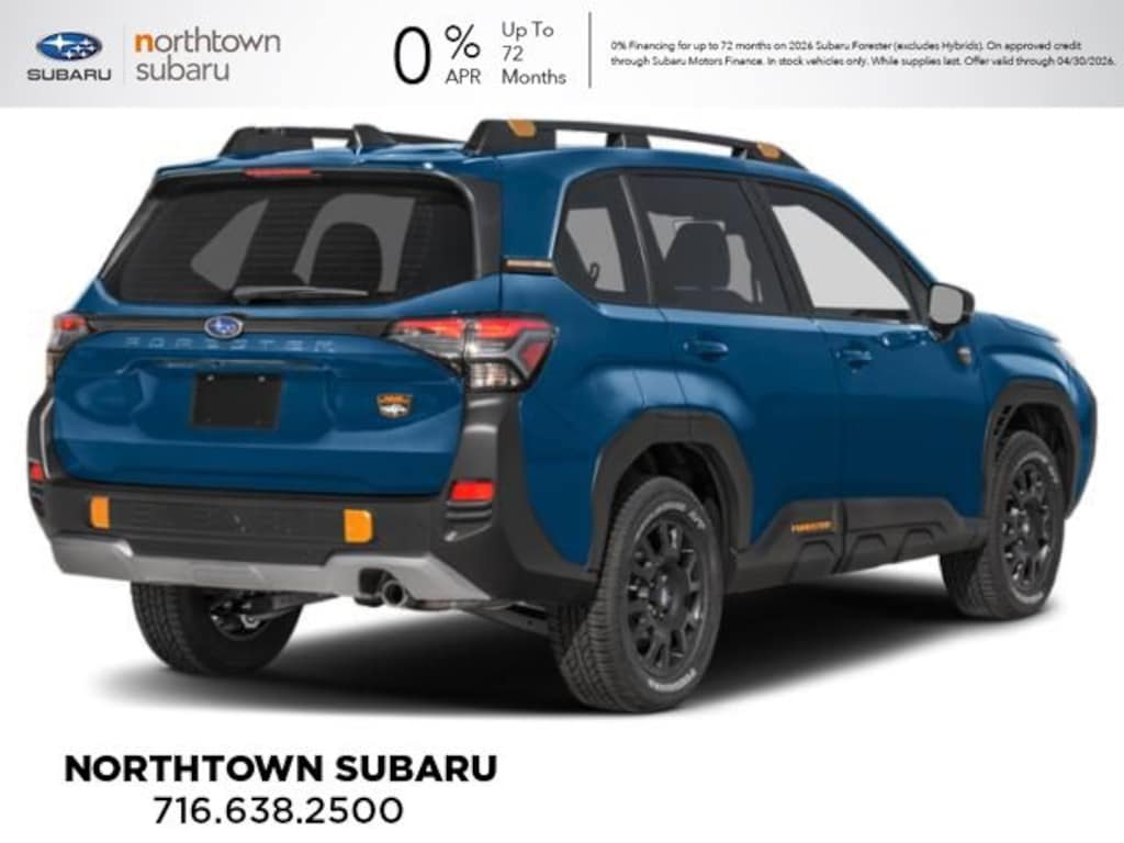 Autumn 2026 Subaru Forester Wilderness AWD Lineartronic CVT 2.5L 4-Cylinder DOHC 16V Recent Arrival! 24/28 City/Highway MPG See the rest of our inventory at: NORTHTOWNSUBARU.COM Harman/Kardon Speaker System and Power Rear Gate (Power Rear Gate and Radio: Subaru 11.6' Multimedia Navigation System), 4-Wheel Disc Brakes, 6 Speakers, ABS brakes, Air Conditioning, Alloy wheels, AM/FM radio: SiriusXM with 360L, Anti-whiplash front head restraints, Auto High-beam Headlights, Automatic temperature control, Brake assist, Bumpers: body-color, Driver door bin, Driver vanity mirror, Dual front impact airbags, Dual front side impact airbags, Electronic Stability Control, Emergency communication system: MySubaru Companion (5-years free), Exterior Parking Camera Rear, Four wheel independent suspension, Front anti-roll bar, Front Bucket Seats, Front Center Armrest, Front dual zone A/C, Front fog lights, Front reading lights, Fully automatic headlights, Heated door mirrors, Heated Front Bucket Seats, Heated front seats, Illuminated entry, Knee airbag, LED Upgrade, Low tire pressure warning, Occupant sensing airbag, Outside temperature display, Overhead airbag, Overhead console, Panic alarm, Passenger door bin, Passenger vanity mirror, Power door mirrors, Power driver seat, Power moonroof: Panoramic, Power steering, Power windows, Radio data system, Radio: Subaru 11.6' Multimedia Plus System, Rain sensing wipers, Rear anti-roll bar, Rear Bumper Cover, Rear seat center armrest, Rear Seatback Protector, Rear window defroster, Rear window wiper, Remote keyless entry, Security system, Speed control, Speed-sensing steering, Splash Guards, Split folding rear seat, Spoiler, Steering wheel mounted audio controls, Tachometer, Telescoping steering wheel, Textured StarTex Upholstery, Tilt steering wheel, Traction control, Trip computer, Turn signal indicator mirrors, Variably intermittent wipers, and Wheels: 17' x 7.0 J Matte Black Finish Aluminum-Alloy.