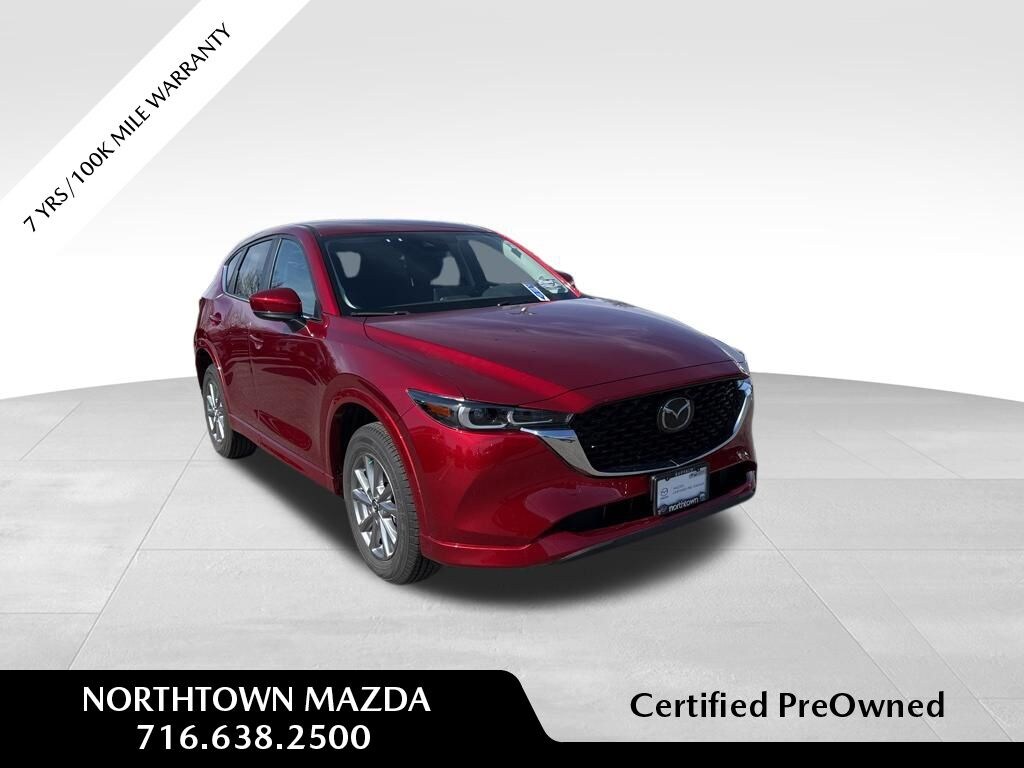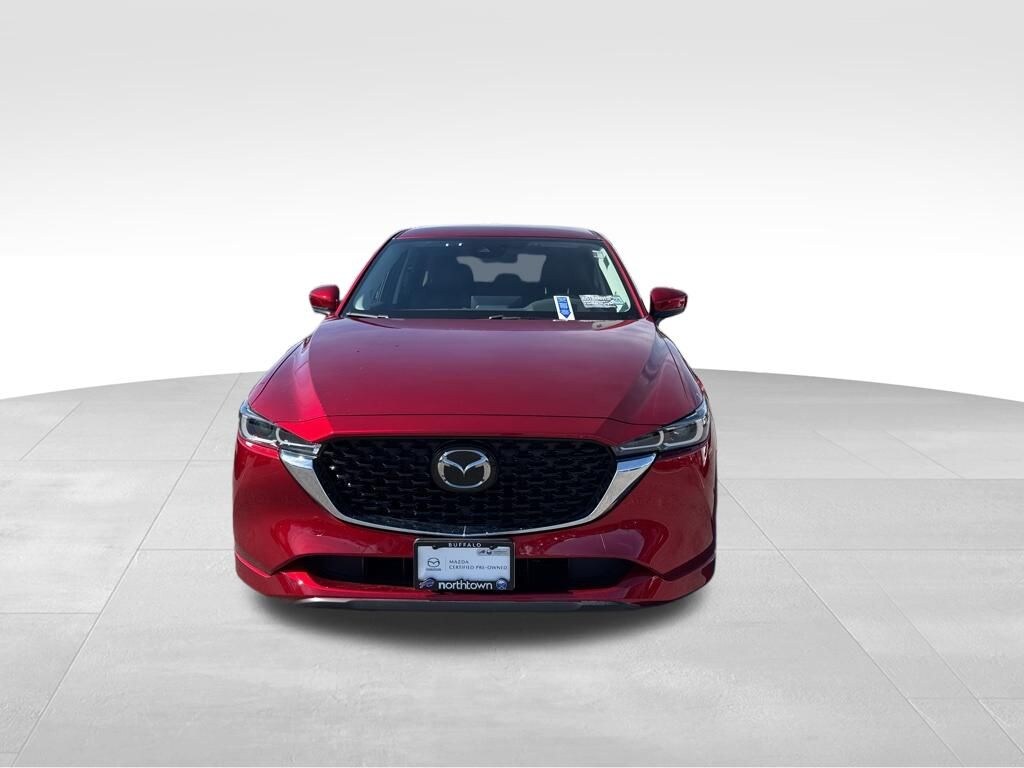 Certified. Soul Red Crystal Metallic 2025 Mazda CX-5 2.5 S Select Package AWD 6-Speed Automatic SKYACTIV® 2.5L 4-Cylinder DOHC 16V AppLink/Apple CarPlay and Android Auto, Electronic Stability Control, Front dual zone A/C, Heated front seats, Leatherette Seat Trim, Multifunction Commander Control, Power driver seat, Rain sensing wipers.