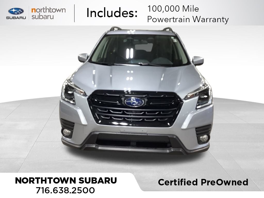 Certified. Ice Silver Metallic 2023 Subaru Forester Premium AWD Lineartronic CVT 2.5L 4-Cylinder DOHC 16V